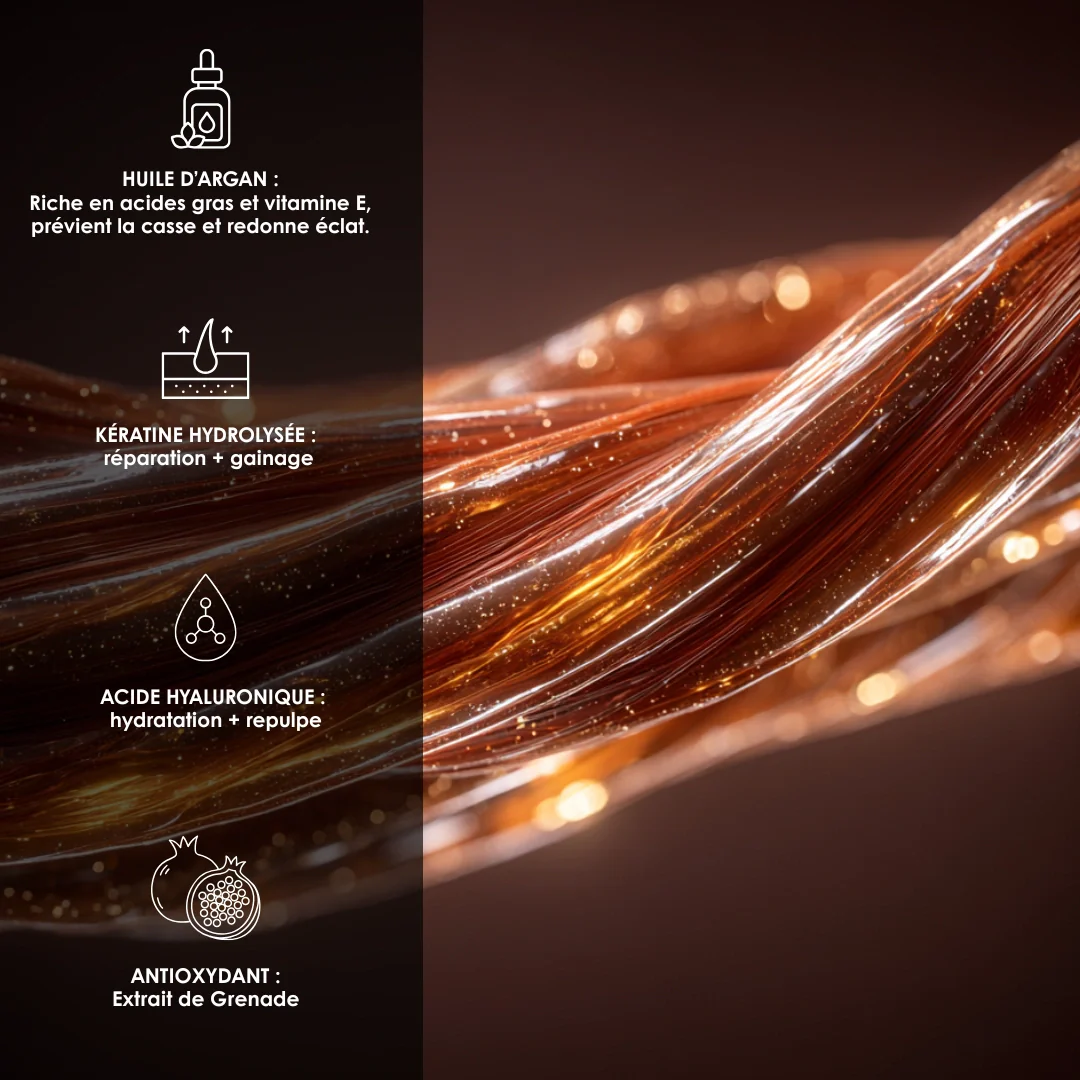 - Cheveux plus doux & lumineux : texture souple, couleur éclatante, coiffage facilité